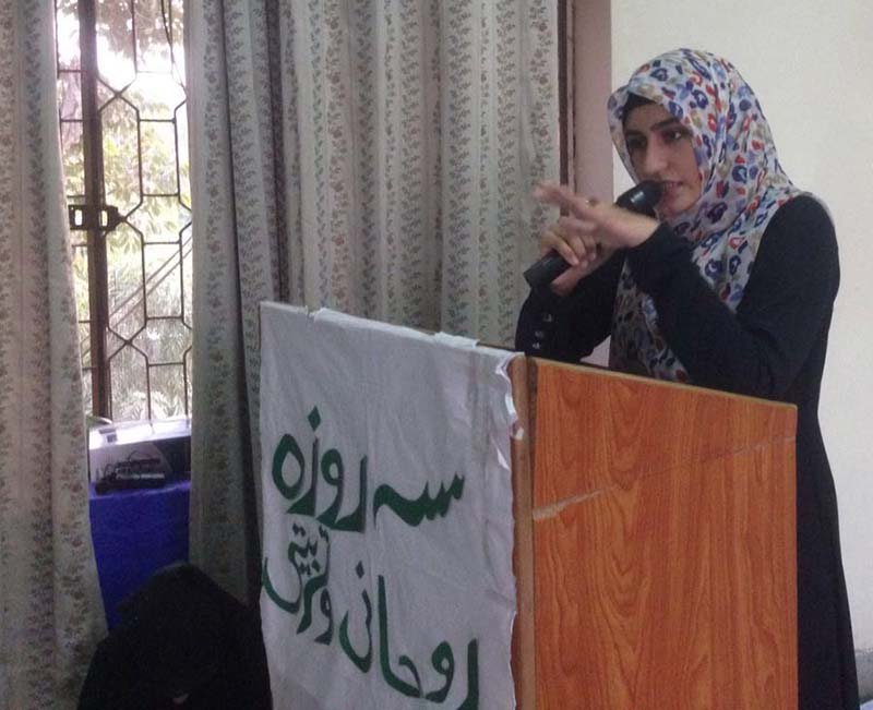 منہاج القرآن ویمن لیگ کے زیراہتمام منہاج کالج برائے خواتین ٹاون شپ، لاہور میں سہ روزہ نفلی و تربیتی اعتکاف ہوا۔ 31 اکتوبر 2016ء کو اعتکاف کے دوسرے روز منہاج القرآن ویمن لیگ کی طرف سے منعقدہ سیشن میں ’’النصیحہ‘‘ کے موضوع پر تربیتی لیکچر دیا۔ مرکزی ناظمہ ویمن لیگ افنان بابر نے خواتین کی اخلاقی معاشرتی اور روحانی کردار کی تشکیل پر روشنی ڈالی۔