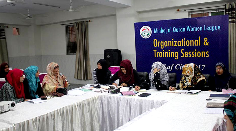 منہاج القرآن ویمن لیگ کے زیراہتمام خواتین شہر اعتکاف میں ویمن لیگ کی تحصیلی ناظمات کیساتھ تنظیمی و تربیتی نشست کا اہتمام کیا گیا۔ ٹریننگ سیشن کی صدارت ڈاکٹر غزالہ حسن قادری نے اور مسز فضہ حسین قادری نے کی۔ اس نشست میں منہاج القرآن ویمن لیگ سنٹرل پنجاب سے اوکاڑہ، مریدکے، صفدر آباد، خانقاں ڈوگراں اور مانا والا کی تحصیلی ناظمات نے شرکت کی۔ ڈاکٹر غزالہ حسن قادری اور مسز فضہ حسین قادری نے شرکاء کو تنظیمی امور کی بہتر انجام دہی اور رفاقت سازی کے حوالے سے ضروری ہدایات دیں۔