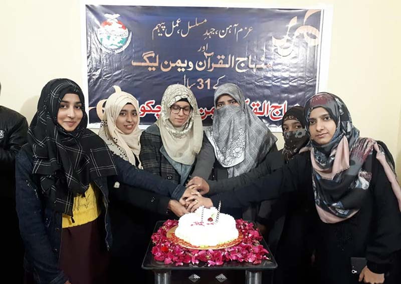 منہاج القرآن ویمن لیگ چکوال کے زیراہتمام 31 ویں یوم تاسیس کی تقریب منعقد ہوئی۔ تقریب میں منہاج القرآن ویمن لیگ چکوال کی قائدین و کارکنان نے بھرپور شرکت کی۔ اس موقع پر یوم تاسیس کا کیک کاٹا گیا اور عہدیداروں و کارکنان نے ایک دوسرے مبارکبادیں دیں۔
