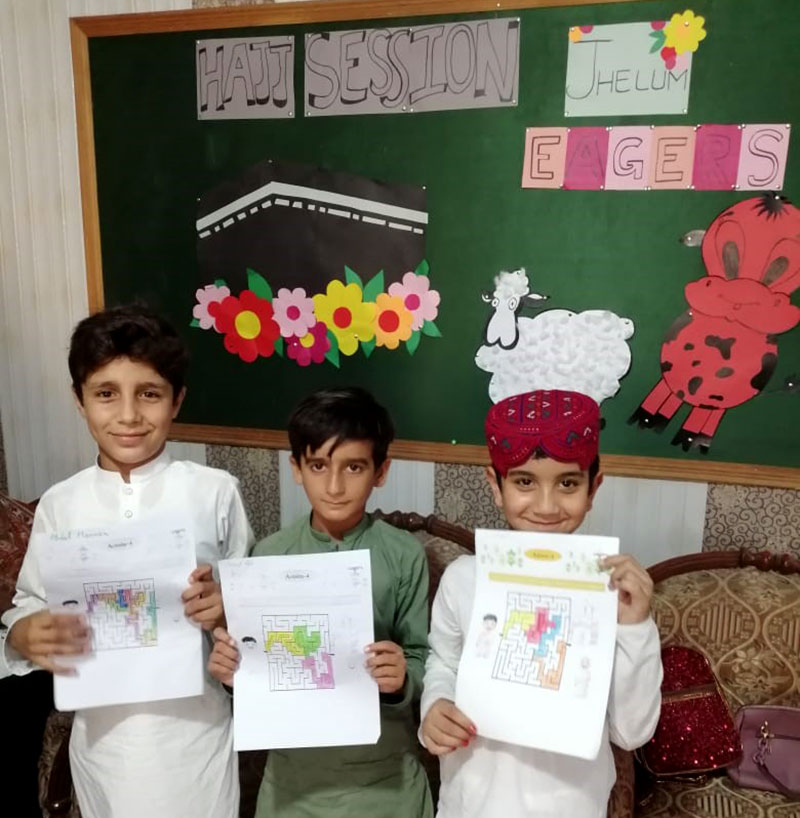 بچوں نے حج سے متعلقہ معلومات کو بذریعہ پزلز بھی سمجھا۔ پروگرام میں محترمہ مریم نعیم ناظمہ منہاج ویمن لیگ جہلم نے ’’کڈز سٹوری‘‘ کارنر میں حضرت ابراہیم علیہ السلام کی سیرت پر مبنی واقعاتی کہانی بھی بچوں کو سنائی۔ آخر میں بچوں نے اجتماعی طور پر تکبیرات بھی ادا کیں۔